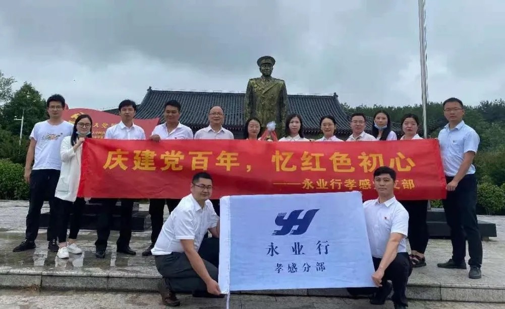永业行孝感党支部开展 “庆建党百年 忆红色初心”主题党日活动 2021-06-20 为庆祝中国共产党成立100周年,缅怀革命先烈,追寻红色记忆,6月19日,永业行孝感党支部组织全体正式党员、预备党员、入党积极份子、先进员工代表一行15人,冒着绵绵细雨,先后赴开国上将王新亭、刘震故里,以及打响“中原突围”(南路部队)第一枪的孝昌县磨山村,开展“庆建党百年 忆红色初心”主题党日活动。 走进王新亭将军故里——孝南区朋兴乡王家岗村,大家向将军纪念碑敬献花篮,参观将军老屋旧址,重温将军革命故事,感受红军将士故里的传承与巨变。 MORE